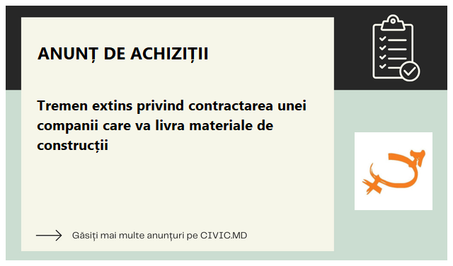 Obiectivul concursului: Contractarea unei companii care va livra materiale de construcție în municipiul Bălți.