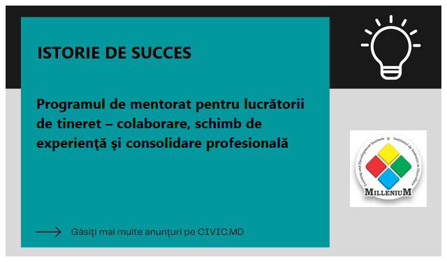În concluzie, putem afirma că mentoratul nu este doar formare, este construcție comunitară. Este transmitere de experiență, de valori profesionale și de responsabilitate socială. Programul a contribuit la contruirea unei rețele mai solide, mai unite și mai pregătite să răspundă nevoilor tinerilor din Republica Moldova.