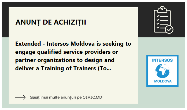 Extended - Intersos Moldova is seeking to engage qualified service providers or partner organizations to design and deliver a Training of Trainers (ToT) programme on Self-Care and Peer Support for Nurses and Frontline Health Workers