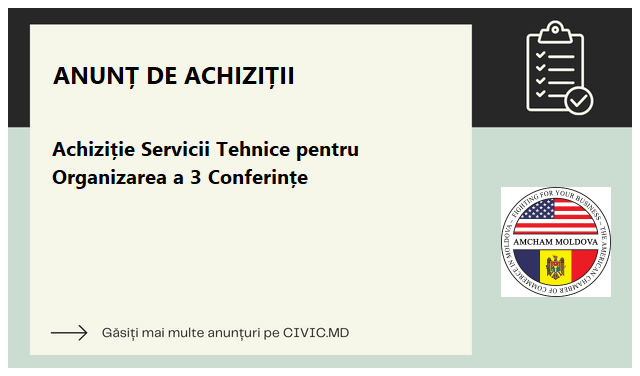 Achiziție Servicii Tehnice pentru Organizarea a 3 Conferințe (o zi)