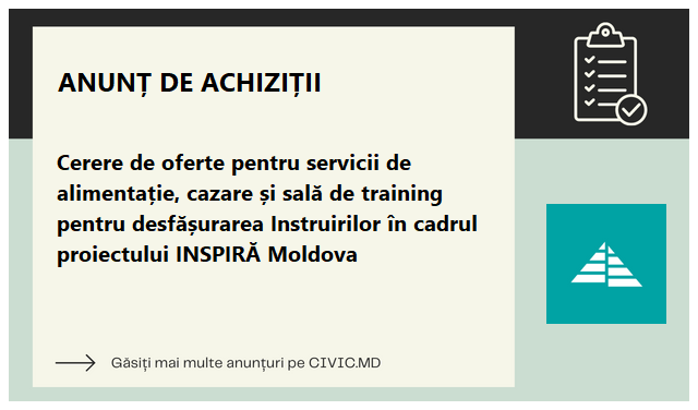 Cerere de oferte pentru servicii de alimentație, cazare și sală de training pentru desfășurarea Instruirilor în cadrul proiectului INSPIRĂ Moldova