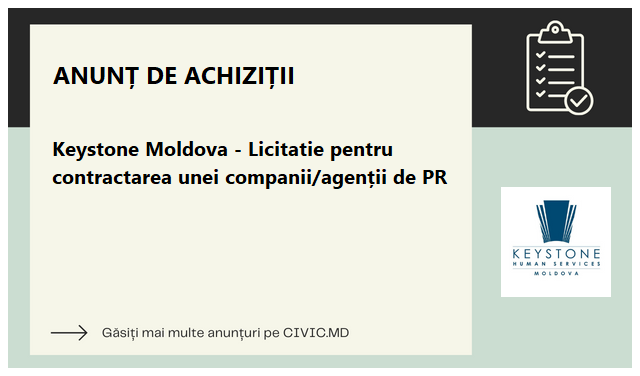 Keystone Moldova - Licitatie pentru contractarea unei companii/agenții de PR