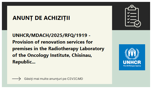 UNHCR/MDACH/2025/RFQ/1919 - Provision of renovation services for premises in the Radiotherapy Laboratory of the Oncology Institute, Chisinau, Republic of Moldova - Deadline: 20 October 2025