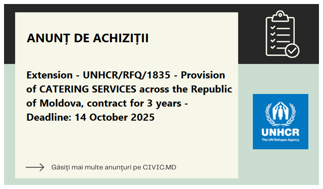 Extension - UNHCR/RFQ/1835 - Provision of catering services across the Republic of Moldova, contract for 3 years - Deadline: 14 October 2025