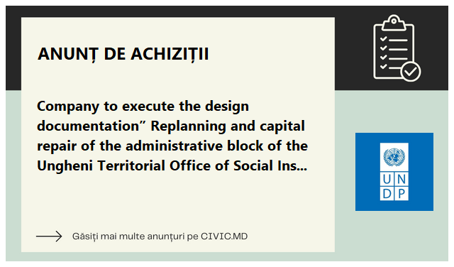 Company to execute the design documentation” Replanning and capital repair of the administrative block of the Ungheni Territorial Office of Social Insurance, with a height regime of S+P+1E in Ungheni municipality