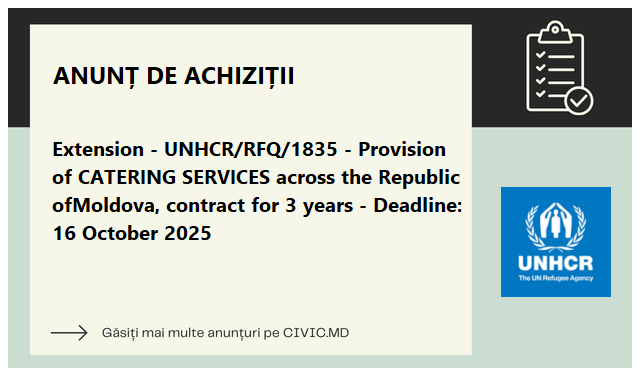 Extension - UNHCR/RFQ/1835 - Provision of catering services across the Republic ofMoldova, contract for 3 years - Deadline: 16 October 2025