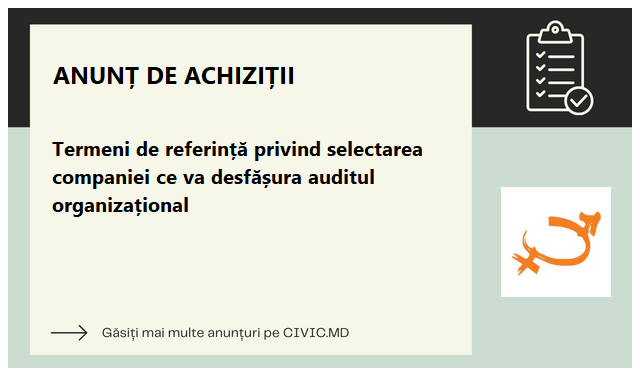 Termeni de referință privind selectarea companiei ce va desfășura auditul organizațional