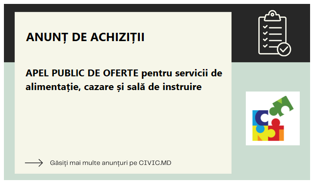 APEL PUBLIC DE OFERTE pentru servicii de alimentație, cazare și sală de instruire