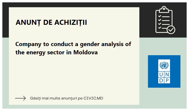 United Nations Development Programme, through its “Accelerating a just energy transition in Moldova, JET” Project, hereby invites Companies to conduct a gender analysis of the energy sector in MD
