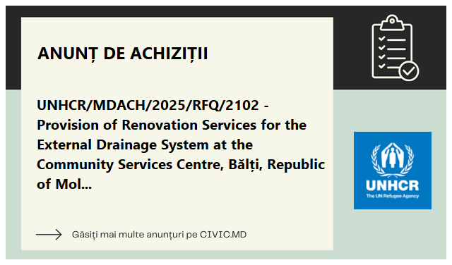 UNHCR/MDACH/2025/RFQ/2102 - Provision of Renovation Services for the External Drainage System at the Community Services Centre, Bălți, Republic of Moldova - Deadline: 13 November 2025