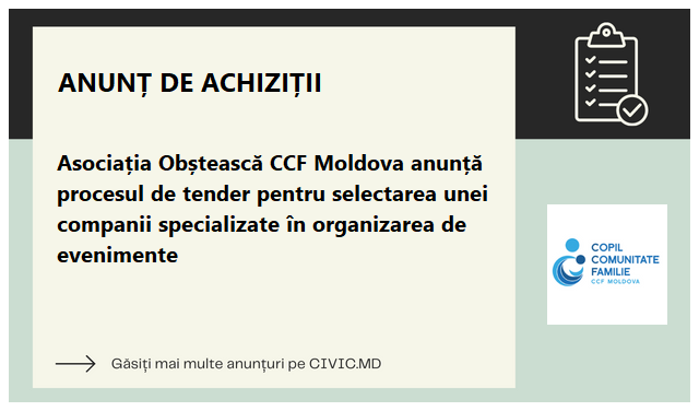 Asociația Obștească CCF Moldova anunță procesul de tender pentru selectarea unei companii specializate în organizarea de evenimente
