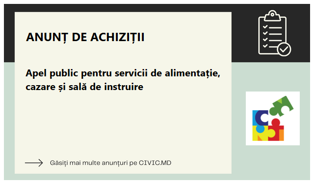 Apel public pentru servicii de alimentație, cazare și sală de instruire