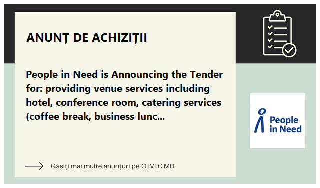 People in Need is Announcing the Tender for: providing venue services including hotel, conference room, catering services (coffee break, business lunch banquet)