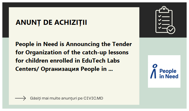 People in Need is Announcing the Tender for Organization of the catch-up lessons for children enrolled in EduTech Labs Centers/ Организация People in Need объявляет тендер на организацию дополнительных занятий для детей, обучающихся в центрах EduTech Lab