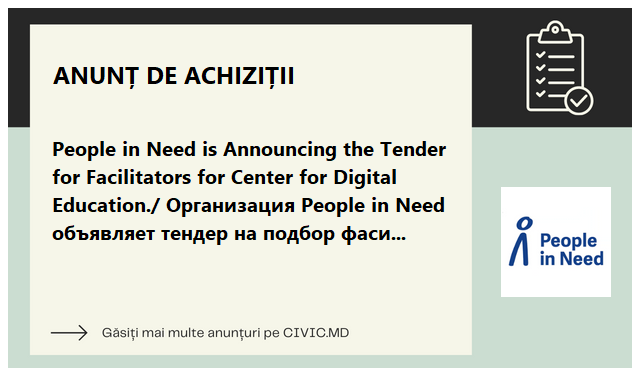People in Need is Announcing the Tender for Facilitators for Center for Digital Education/ Организация People in Need объявляет тендер на подбор фасилитаторов для Центра цифрового образования