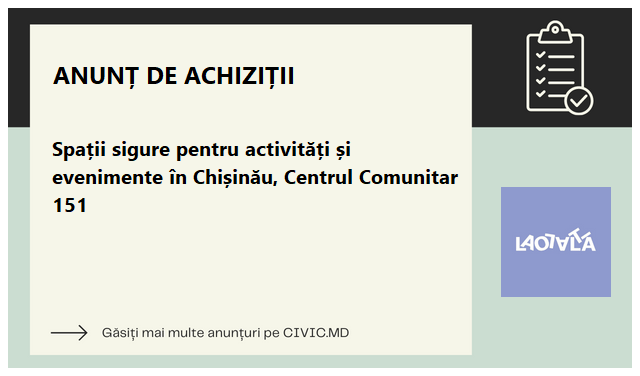 Spații sigure pentru activități și evenimente în Chișinău, Centrul Comunitar 151
