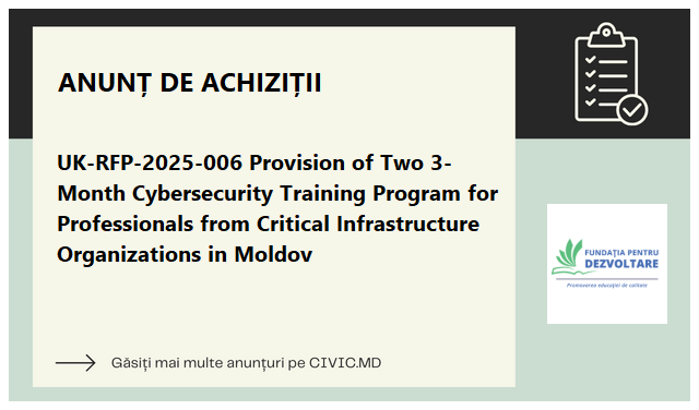 UK-RFP-2025-006 Provision of Two 3-Month Cybersecurity Training Program for Professionals from Critical Infrastructure Organizations in Moldov
