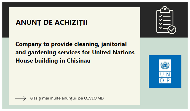 Company to provide cleaning, janitorial and gardening services for United Nations House building in Chisinau