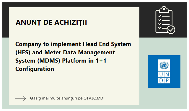 The United Nations Development Programme (UNDP) in Moldova kindly requests your Proposal for Implementation of Head End System (HES) and Meter Data Management System (MDMS) Platform in 1+1 Configuration, under 2 Lots within Request for Proposal RFP25/03147.