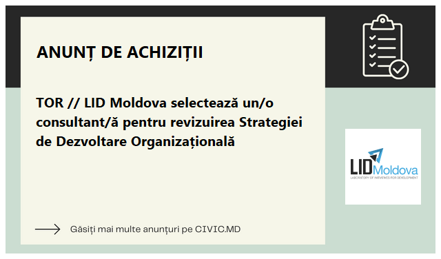 TOR // LID Moldova selectează un/o consultant/ă pentru revizuirea Strategiei de Dezvoltare Organizațională