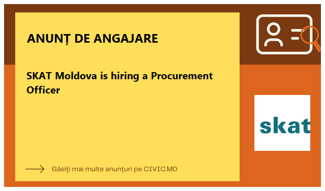 SKAT Moldova is looking to recruit an additional Procurement Officer to strengthen oversight and implementation of procurement procedures in its projects. The position will work closely with the team of Procurement and Operations Managers in place and reports to the respective project coordinator (Team Leader) based in Moldova. The position can be offered either as part-time (no less than 70%) or as full-time employment.