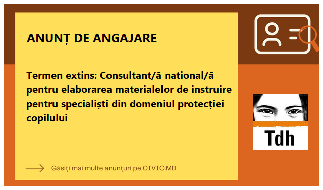Termen extins: Consultant/ă national/ă pentru elaborarea materialelor de instruire pentru specialiști din domeniul protecției copilului