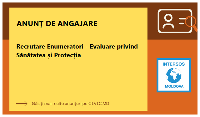 Recrutare Enumeratori - Evaluare privind Sănătatea și Protecția