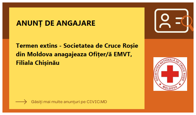 Termen extins - Societatea de Cruce Roșie din Moldova anagajeaza Ofițer/ă EMVT, Filiala Chișinău
