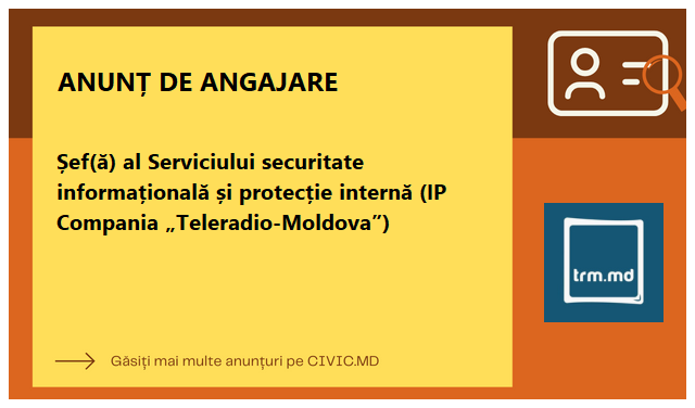 Șef(ă) al Serviciului securitate informațională și protecție internă (IP Compania „Teleradio-Moldova”)