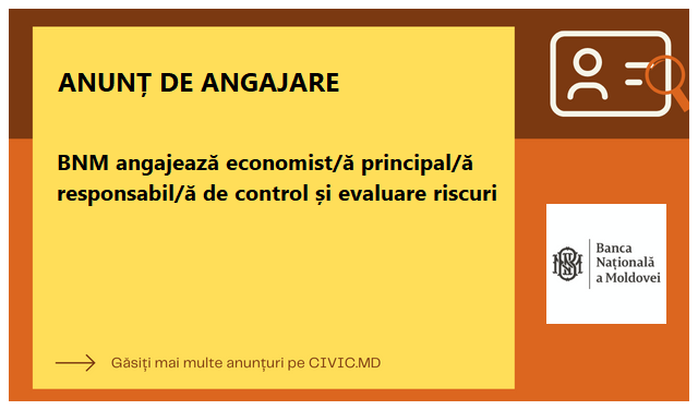 BNM angajează economist/ă principal/ă responsabil/ă de control și evaluare riscuri
