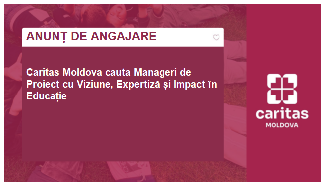 Caritas Moldova cauta Manageri de Proiect cu Viziune, Expertiză și Impact în Educație