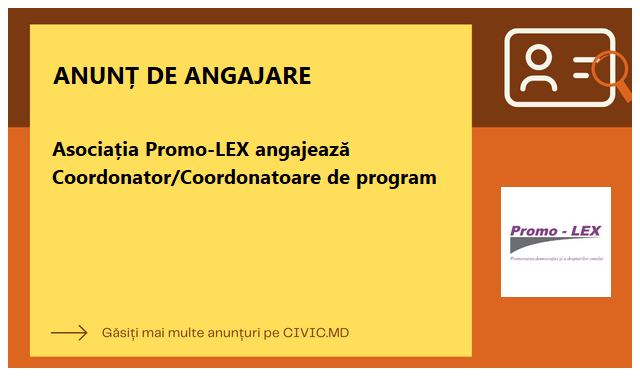 Asociația Promo-LEX angajează Coordonator/Coordonatoare de program