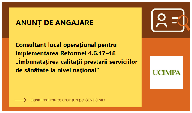 Consultant local operațional pentru implementarea Reformei 4.6.17–18 „Îmbunătățirea calității prestării serviciilor de sănătate la nivel național”