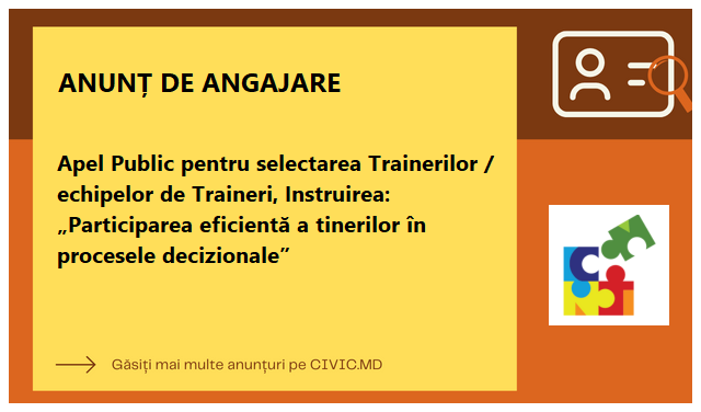 Apel Public pentru selectarea Trainerilor / echipelor de Traineri, Instruirea: „Participarea eficientă a tinerilor în procesele decizionale”