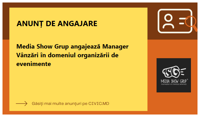 Media Show Grup angajează Manager Vânzări în domeniul organizării de evenimente