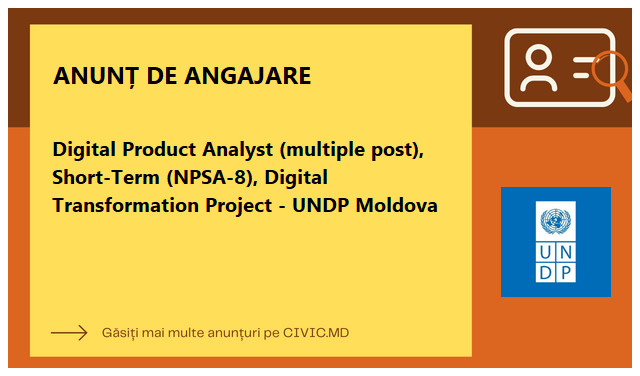 Digital Product Analyst (multiple post), Short-Term (NPSA-8), Digital Transformation Project - UNDP Moldova