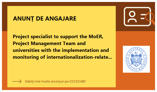 Assignment Title: Project specialist to support the MoER, Project Management Team and universities with the implementation and monitoring of internationalization-related activities under MHEP