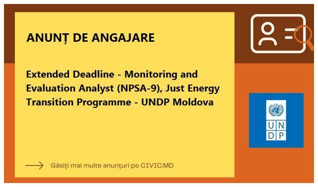Extended Deadline - Monitoring and Evaluation Analyst (NPSA-9), Just Energy Transition Programme - UNDP Moldova