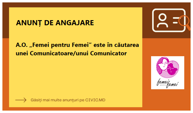 A.O. „Femei pentru Femei” este în căutarea unei Comunicatoare/unui Comunicator