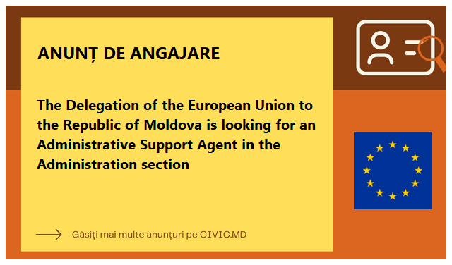 The Delegation of the European Union to the Republic of Moldova is looking for an Administrative Support Agent in the Administration section