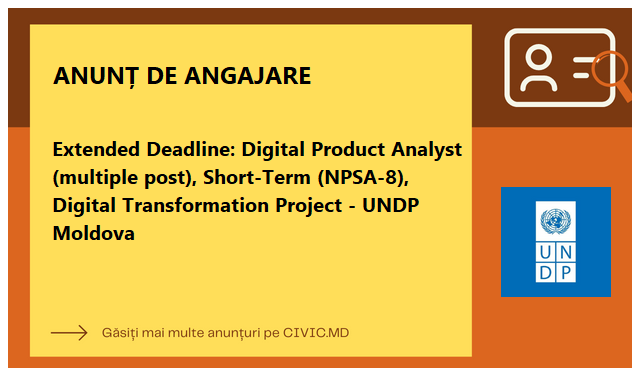Extended Deadline: Digital Product Analyst (multiple post), Short-Term (NPSA-8), Digital Transformation Project - UNDP Moldova