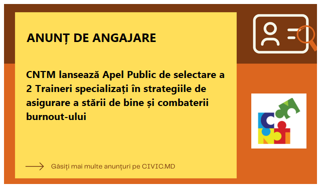 CNTM lansează Apel Public de selectare a 2 Traineri specializați în strategiile de asigurare a stării de bine și combaterii burnout-ului
