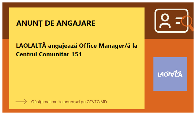 LAOLALTĂ angajează Office Manager/ă la Centrul Comunitar 151