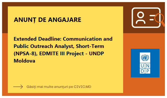 Extended Deadline: Communication and Public Outreach Analyst, Short-Term (NPSA-8), EDMITE III Project - UNDP Moldova