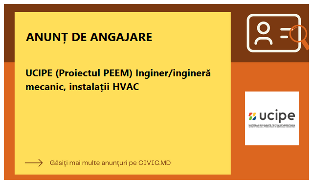 UCIPE (Proiectul PEEM) Inginer/ingineră mecanic, instalații HVAC