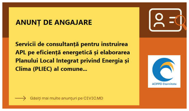 Servicii de consultanță pentru instruirea APL pe eficiență energetică și elaborarea Planului Local Integrat privind Energia și Clima (PLIEC) al comunei Baimaclia