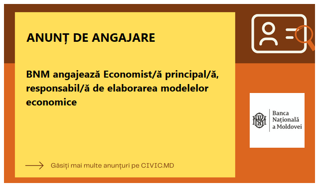 BNM angajează Economist/ă principal/ă, responsabil/ă de elaborarea modelelor economice