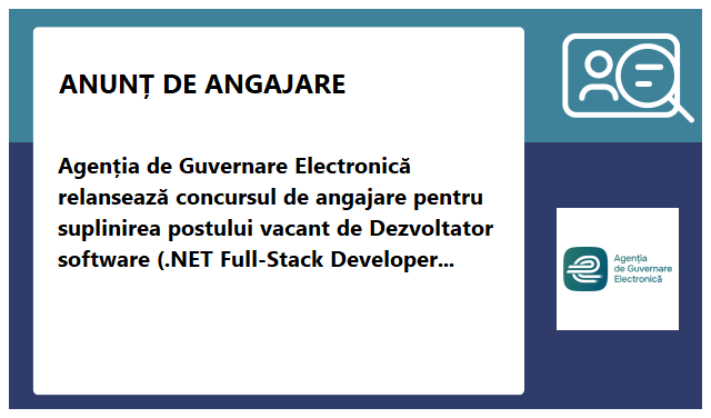 Agenția de Guvernare Electronică relansează concursul de angajare pentru suplinirea postului vacant de Dezvoltator software (.NET Full-Stack Developer)