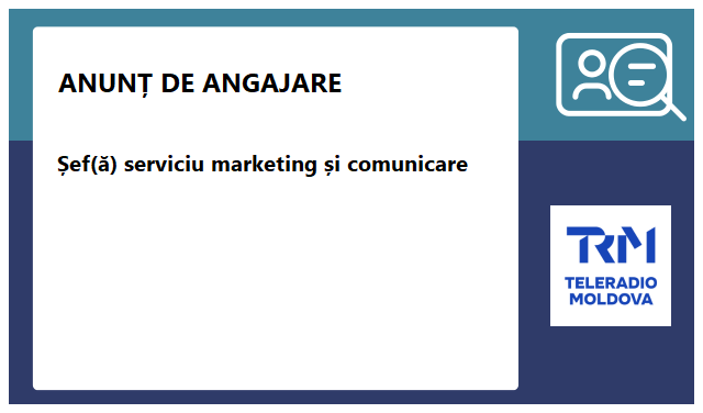 IP Compania „Teleradio-Moldova” este în căutarea unei persoane pentru ocuparea funcției de Șef(ă) al Serviciului marketing și comunicare.