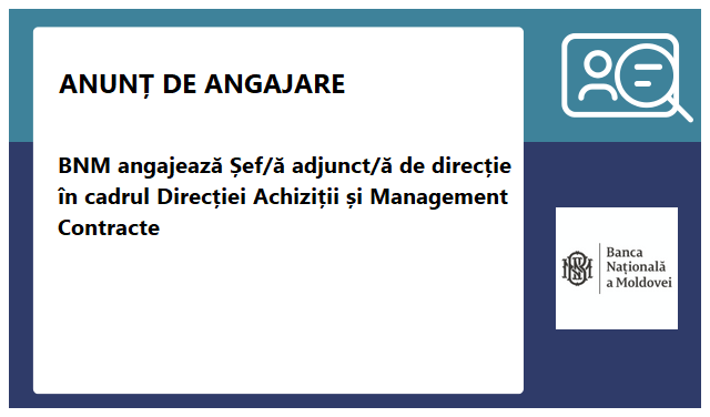 BNM angajează Șef/ă adjunct/ă de direcție în cadrul Direcției Achiziții și Management Contracte